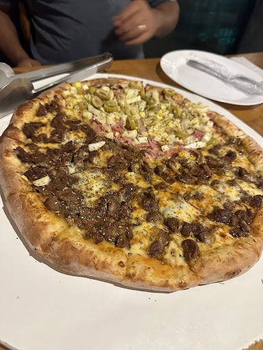 Chegamos ao local e fomos atendidos pelo garçom, simpático e atencioso. Pedimos as bebidas de antes da comida. No pedido das bebidas haviam dois sucos, que vieram em copos de tamanhos/volumes diferentes. (Bom, "nada muito grave"). Após decidirmos os sabores da pizza, fizemos o pedido. Pizza gigante (até 4 sabores), pedimos: 1/4 portuguesa 1/4 franco c/ catupiri 1/4 lombo c/ catupiri 1/4 Seis queijos, sem chedar O garçom tomou nota e informou o tempo de espera de 20 minutos. Esperamos os 20 minutos e após isso mais 25 minutos, ou seja o tempo de espera foi maior do que o dobro antes informado. Após a longa e frustrante espera, com bastante fome, recebemos a pizza. E para surpresa, o sabor de 6 queijos veio com chedar (aquele cheiro de cheetos bolinha me dá enjôo). E como se não bastasse, o sabor de lombo com catupiri simplismente não estava na pizza. Isso mesmo, a pizza veio com somente 3 sabores, e 1 deles errado. Chamei o garçom e comentei que haviam varios erros no pedido..., ele se prontificou em fazer a substituição. Porém após a longa espera que passamos, resolvemos aceitar aquela mesmo, onde ele nos "prometeu" um desconto no caixa. Após o consumo frustrado da pizza, fomos ao caixa fazer o acerto. E a caixa se recusou a dar o desconto! Pode isso ?! Falou que "da próxima vez" eles farão uma pizza mais caprichada... Estou até agora tentando entender esse golpe... Me pergunto, será que eu realmente arriscaria comer mais uma vez neste local? Com...