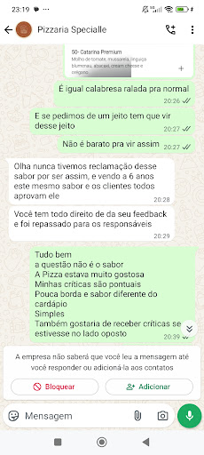 Read moreComprei uma pizza hoje e me decepcionei com os seguintes pontos. 1° borda de catupiry não era catupiry e quando questionei, falaram que era catupiry da Tirol, sendo que no site diz que o fornecedor é CATUPIRY e nem menciona Tirol 2° o dito catupiry foi passado como se fosse com colher na borda, bem escasso.. nunca vi uma borda oca de catupiry 3° peguei um sabor que anunciava "cubos de peito de peru". Veio um peito de peru ralado bem escasso também