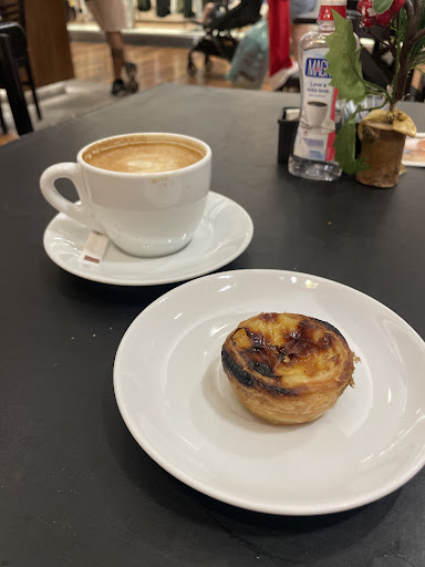 Pedi uma bruschetta (de marguerita, porém - palavras da própria atendente - estavam sem manjericão, então acabou sendo só queijo e tomate), por 17 reais. Os pasteizinhos de nata, um tradicional e um com amendôas, estavam bem gostosos, valeram a pena e se não me engano foram 6 reais cada. Para beber, pedi um chai, que achei com um gosto meio diferente dos que já tomei antes, mas estava gostoso. Acho que foi uns 15 ou 17 reais.