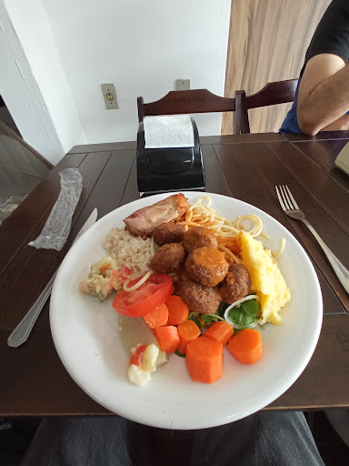 O purê não é de batata, é de trigo. O caldo do feijão é engrossado artificialmente, acho que com trigo também. Eu, que não posso comer trigo, comi só salada e carne e mesmo assim me fez mal. Um absurdo. O pessoal da cozinha é simpático ao menos, mas o atendimento no caixa parece que está te fazendo um favor por obrigação. As 2 estrelas são pela simpatia da galera da cozinha,...
