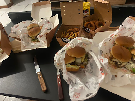 Pedimos um hambúrguer clássico e um hambúrguer de salmão. O clássico, de carne bovina, é bem fraquinho: carne seca, pouco sal, pouco sabor, vegetais murchos do período mesozoico, maionese tão discreta que parece nem estar ali. O pão de sal é ok, se viesse mais quentinho seria bem bom. Sabe aquela refeição que tenta ser neutra pra agradar a todos? Exatamente isso, mas não agrada ninguém: sem personalidade alguma. Já o hambúrguer de salmão é o oposto: empanado crocante e sequinho, com um cream cheese de excelente qualidade e um teriaki que chama atenção mas não rouba a cena. Um pão brioche macio e bem preparado em forma e sabor arrematam o combo. Excelente, muito acima da média. Para quem gosta de comida japonesa e temaki com certeza vai gostar. Não pedi batata frita nem bebida, mas acredito que só voltarei a pedir o sanduíche de salmão mesmo. Para uma casa de hambúrgueres eles precisam melhorar muito, uma vez que os tradicionais de carne são a intenção da maioria...