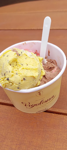 Aproveitamos que estávamos visitando o Vígolo, paramos na volta na Vigolana. A gelataria está localizada em uma curva da rua que leva ao Santuário da madre Paulina. O local é perigoso, a entrada e saída devem ser feitos com muito cuidado, pois a visão de ambas direções é ruim. A Vigolona é pequena, porém aconchegante, logo após a entrada está o freezer expositor dos sabores. Experimentei casquinha com dois sabores, goiaba e morango. Os gelatos são bem saborosos e com gosto de fruta na boca, açúcar na medida correta. Nesse dia não tinha cupuaçu que era o meu objetivo. Os outros sabores eram os clássicos sabores italianos. Espaço é decorado com fotos antigas do Trentino e de Nova Trento. Na parte de fora os gerânios dão todo o charme e...