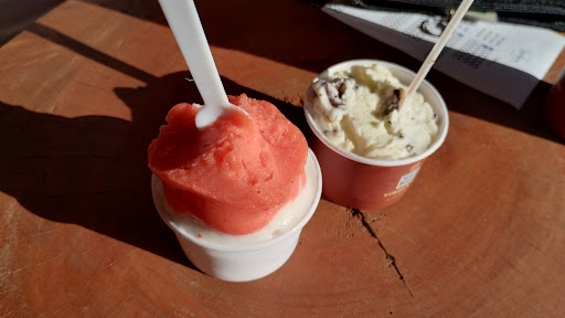 Read moreOs sorvetes de fruta (morango e limão) estavam muito doces, pode ser o meu paladar, mas tive que beber água para aliviar. O sorvete feito com leite e creme são mais suaves e deliciosos. São feitos com ingredientes de primeira, dá para sentir. O atendimento é ótimo e o ambiente e rústico e aconchegante. A música me incomodou um pouco meio alta e agitada. No fim, são caros mas vale a pena, tentem um de fruta e outro feito de leite. Na foto eles já foram comidos, vem...