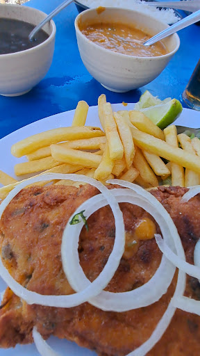 É o último, ou o primeiro (depende do ponto de partida), restaurante da prainha em Arraial do Cabo/RJ. Não tem nada no cardápio de comida por menos de 100 reais, exceto a unidade de pastel por 10 reais e a porção de batata frita por 50 reais. Pedi uma anchova assada ao molho de camarão, acompanhada de arroz branco, pirão, batata frita e salada - para 1 pessoa por 150 reais. A anchova surpreende pelo tamanho e pelo tempero, estava muito boa, temperada e bem feita. Vem uns limões acompanhando, que deixa tudo melhor ainda. O que peca é o ambiente em si, um pouco precário, apesar desse ser o restaurante melhor “apresentando” na orla da prainha. O prato serve duas pessoas. A vista do restaurante pra praia é linda. Voltaria? Não sei. Prefiro explorar outros...