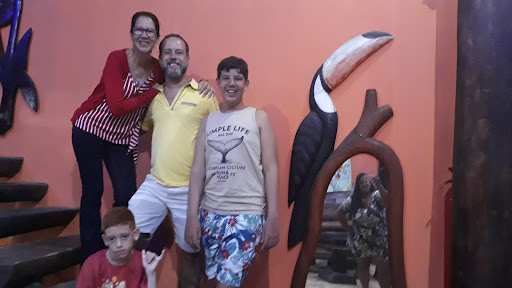 As crianças geralmente ficam encantadas com o aquário, estátuas em madeira de animais, o ambiente é bem familiar e aconchegante, bom pra bater papo, não tem música ambiente, apenas uma tv no canal OFF, onde passam belas imagens que contrastam com o ambiente...