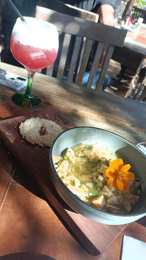 Corine Vaz, a super Chef, segue radiante, com um sorriso acolhedor e sincero, sempre me surpreendendo. Desta vez com uma entrada de tartar de banana da terra, seguida um excelente e suculento filet mignon com uma crosta de gorgonzola e nhoque com parmesão, acompanhados de um drink à base de gin, suco de hibisco natural, limão e anis.