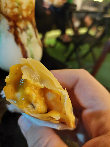 A apresentação bonita, mas não senti sabor, exceto o de massa. Mal tinha recheio. Valeria uma calda ou uma banana caramelada por dentro e mais canela. Não sei se a proposta era ser sem...