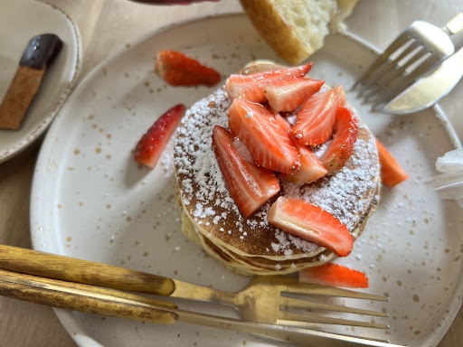 Read morePelas fotos no Google nos apaixonamos pelo local e cardápio.O lugar é encantador. Decoração lindíssima como nas fotos. Meu marido e eu chegamos às 10h da manhã ( o local abre às 9h) e os croissants já tinham acabado. Nenhum!!! Pedimos 1 café da manhã (frutas, torrada, suco de laranja yogurte, ovos e café ). Os funcionários super preocupados em serem prestativos... Foram extremamente gentis. Mas a demora foi impressionante! Tinham apenas 2 mesas ocupadas. Finalmente chegaram os ovos (mto bons), 1 (UMA SÓ) fatia finíssima de focaccia torrada e um potinho com yogurte. (Pedi o café mais tarde). Perguntei pelas frutas. O garçon foi até cozinha, demorou um bocado e voltou dizendo "estão dentro do yogurte". Olhei dentro do pote: tinham uns 4 ou 5 pedacinhos de mamão do tamanho de uvas passas + 1 colher pequenina de granola. Parecia enfeite. Meu marido perguntou se podia pedir queijo. Ninguém sabia responder. Iam para a cozinha e não voltavam. Perguntei pelo suco de laranja. Demorou mais, e veio um suco fresco dentro de um copo de plástico com tampa e canudo tipo Macdonald. (Todas as louças são lindas e talheres idem) chegou a cesta de pães - "para 2 pessoas" - que meu marido pediu. (Qdo tive que ir até o balcão perguntar quais os pães da tal cesta, me descreveram todos os que fazem "dependendo do dia". Sim!, então por favor me digam os de hoje, pq não comemos presunto nem bacon.....ok. "E vêm acompanhados de 3 tipos de manteiga temperada." Pedi. Chegou a cesta PARA 2 PESSOAS: 6 fatias finíssimas!!!! dos tais pães ( 3 tipos) e 3 rodelinhas de manteiga cada uma menor e mais fina que 1 tampinha de garrafa. Tudo demoradíssimo!!!! Atendentes adoráveis e perdidos. Ah! Não têm queijo para servir. Uma novela conseguir resposta!!! Meu marido comeu boas panquecas. O mel que vieram servir sobre as panquecas "não pode ficar na mesa porque só temos este pote para servir os outros clientes". 😳 Pedi o café / muito bom e charmoso com coador na mesa. (Em contraste com o copo de plástico do suco - mesmo com o nome da loja) Pedimos 1 chesecake de mirtilho maravilhoso ! Mas para a demora absurda, e pagar R$170.... Teria sido melhor pagar mais e sermos realmente bem servidos. Num país tropical, oferecer café da manhã com "frutas" é risível receber pedacinhos, e fatias de pães quase quebrando de tão finas. Quando saímos, a mesa ao lado já se exasperava pela demora, pois tinham chegado mais 3 mesas e a deles ainda sem nenhum serviço. Muito cansativo. Contraditória a oferta e o serviço. Lastimável. Espero que o proprietário entenda que a qualidade não pode ser oferecida com usura e mão fechada. Para o prazer dos olhos não nos...