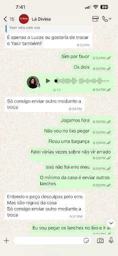 Read morePéssimo não comprem! Atendimento pior ainda! Pedi vários lanches, falei mil vezes para não vir errado. Dois vieram errado diferentes do pedido. Pegamos os lanches tentamos tirar o que veio e ele se desmanchou. Uma pessoa inclusive não come carne e veio a carne. Eles simplesmente não queriam trocar sem os dois lanches que já estavam no lixo. Eles pediram os lanches para trocar ou não trocariam. Eu falei que já estavam no lixo e eu iria levar o lixo para eles verem os lanches e com muita insistência falaram que iriam mandar outro. Isso tudo aconteceu às 21:07 da noite. Os dois lanches foram entregues às 12:10 de propósito depois que todos tinham estavam dormindo. Acordei com o interfone tocando! Eles deixaram uma criança com fome! Péssimo atendimento e o...