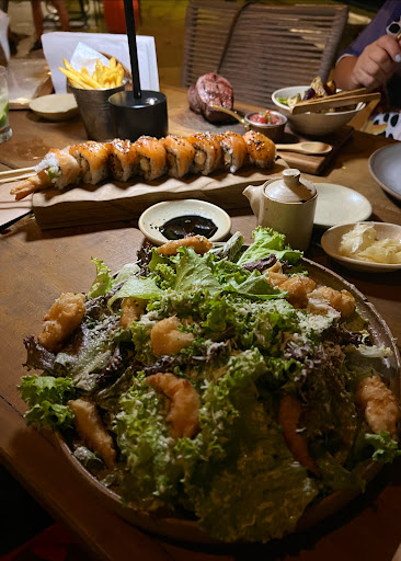 Read moreEdit: infelizmente teve que mudar a minha opinião sobre o local depois da minha última visita (deixei o comentário anterior em baixo). Eu queria passar o meu aniversário aqui já que eu gostei tanto da última vez. Então marquei e avisei que ia vim com 12 pessoas e um bebê para comemorar o meu aniversário. Quando chegamos lá, arrumaram uma mesa para 10 pessoas em um canto lá. Quando eu comentei que não era espaço suficiente para nós, queriam colocar mais duas cadeiras, e deixar todos imprensado na mesa. Além deles nem ter comentado sobre o fato do aniversário e eu não ter recebido nada (nem um tratamento bom do garçom) eles ainda fizeram uma bobeira lá na cozinha. Eu e uma outra pessoa pedimos sushi, só que eu está em um lado da mesa e a outra pessoa no outra lado, colocaram o sushi em um prato grandão e foi muito difícil a gente comer. Tudo muito mal pensado. Além disso três pessoas comeram carne lá e todos falaram que estava dura (eu provei e realmente estava difícil de mastigar). 200RS para um pedaço de carne duro .. nem sei o que falar. Eu nunca vi um restaurante desse nível ignorar por completo o fato do aniversário. Em todos os restaurantes que eu fui na minha vida o aniversariante recebeu pelo menos um bolinho ou uma bebida grátis. Fiquei muito decepcionada. Acho que o preço aqui não bate, só é um local bonito mas eles não conseguem lidar um muitas pessoas (também não tinha garçom suficiente lá). Tem muito que melhorar ainda.
