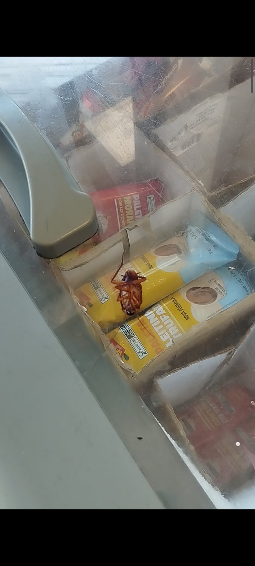 Para piorar, o local tinha lixo em cima do balcão principal e uma barata em cima do freezer de sorvete.