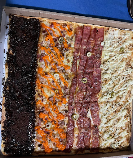 Read moreEstávamos hospedados do flat âncora. Fomos lá rapidinho pegar. Atendimento maravilhoso. Preço ótimo. Escolhemos a de meio metro (25 pedaços). Estávamos em 4. 2 adultos e duas crianças. Porém dessas duas crianças, uma come igual adulto rs. Pedimos uma coca e ao todo gastamos apenas 95,00. Podia escolher até 5 sabores e todas elas maravilhosas. Massa fina e bem recheada. Não gostei muito da doce que pedi. Pedi de churros, mas imaginei e que vinha o queijo derretido com a doce de leite por cima com canela. Mas estava bem seco. Mas tava tudo bem! Era só eu mesmo que ia comer, os demais não curtia de doce e foi apenas 5 quadrados. Daria uma dica apenas na doce que precisa melhorar. Mas, o demais estava ótimo. Sem sombra de dúvidas que quando retornar em cabo frio próximo ao peró eu vou pedir dessa pizza. Só não pedimos para levar pq a hora que saímos a pizzaria ainda não...