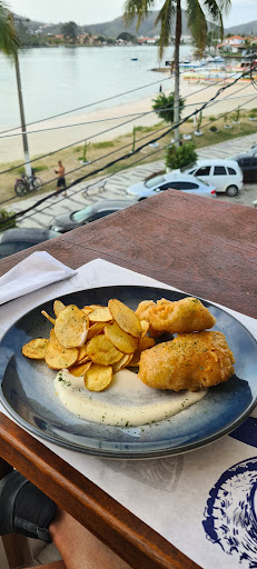 O restaurante fica numa parte bem bonita de Cabo Frio, de frente pro canal com uma vista linda. A casa é daquelas antigas, estilo Paraty, bem bonita.