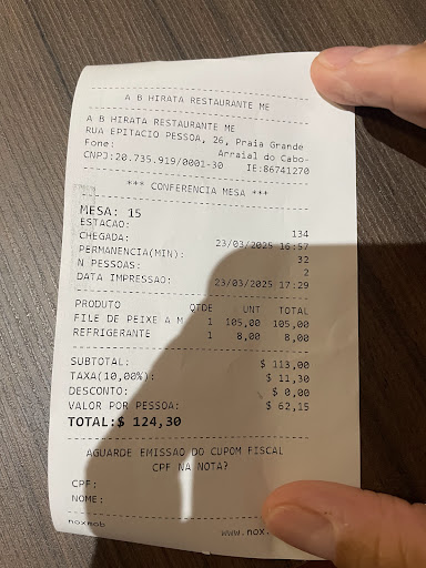 Read moreWe had the fishfilet with Camarão-Sauce. Price: 85RS for 2. It was quite good but nothing special. You can get cheaper deals. Also the ambient was not nice. Strange feeling when there's not many people - better enjoy a pricy restaurant at the beach, or a cheap...