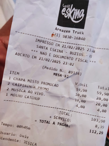 Además al pagar nos enteramos que también nos cobraban 10 reales por la música en vivo, cosa que no nos habían avisado y que luego de la mala experiencia no nos cayó nada bien.
