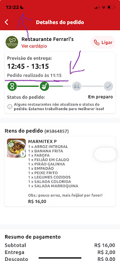 Read moreRealizei um pedido com o restaurante Ferrari’s pelo Chef Mio, efetuando o pagamento via Pix. No entanto, o restaurante entrou em contato comigo pelo WhatsApp para informar que o cardápio estava desatualizado no aplicativo, mas não enviaram a versão atualizada. Seria mais adequado se tivessem me ligado para comunicar o ocorrido, pois, infelizmente, quando vi a mensagem, já haviam se passado mais de 40 minutos. Acabei esperando mais de 2 horas para receber meu almoço. Infelizmente, não recomendo este serviço a ninguém, pois faltou zelo...
