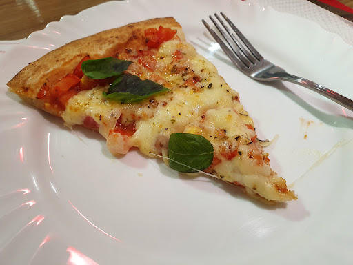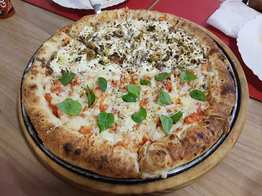A massa não é tão fina e não muito grossa, os ingredientes de boa qualidade, azeitona sem caroço, e manjericão fresco na pizza, o chocolate da doce também é gostoso!