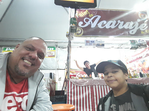 Read moreFomos ao "Point" para comprar três acarajés: minha esposa consumiria um deles no local e levaríamos os outros dois para comer mais tarde. Sentamos em uma mesinha vazia (minúscula, de dois lugares) e, enquanto ela olhava o cardápio para fazer o pedido, eu me levantei para buscar um churrasquinho na barraca próxima. Imediatamente, o garçom nos disse que se eu não poderia ficar sentado lá se estivesse com comida de outro lugar. Ainda tentei explicar que compraríamos os acarajés, mas ele nem me deixou concluir a frase: novamente, me interrompeu dizendo que eu não poderia consumir pratos da outra barraca na mesa (mesmo comprando o produto deles, o que não faz nenhum sentido).