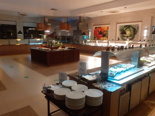 A comida salgada e salada até que são gostosas, apesar de simples e repetitivas ao longo dos dias. As sobremesas são todas péssimas: ou não tem gosto, ou as texturas são ruins ou são doces ao ponto de não sentir mais nada além de açúcar na boca. Cheguei a provar um churros que estava com gosto de FRANGO! Acho que para um restaurante desse porte reutilizar óleo desta maneira algo deplorável. Prefiro comer o churros de barraquinha de rua que dá de 10 a zero nesse.