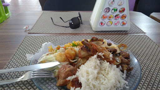 O atendimento é bom, comida simples, mas sem grande quantidade de pimenta na média. Oferece variedade de carne na churrasqueira que são picadas e mantidas aquecidas na chapa. A carne é uma carne comum, nada de especial. Por ficar na chapa alguns pedaços podem ficar mais secos ou borrachudos. Às vezes tem alguém servindo na churrasqueira, mas nem sempre. Quando têm você pode optar por algo mais direto, no entanto, a qualidade da carne não e das melhores, logo não espere picanha Angus. Como tem várias opções gerais é possível optar por carnes do buffet. Além disso, oferece grande variedade de saladas. É melhor que o escritório e parece não ter...