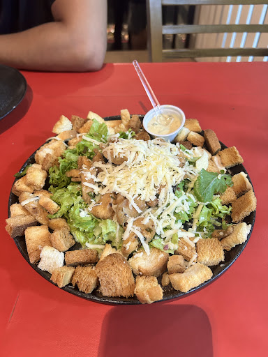 Por fim, após 70 min, chegou a salada com alfaces murchas e que está longe de ser uma salada Ceasar. Após este fiasco, decidimos solicitar o cancelamento das entradas. A solicitação foi realizada para 3 funcionários diferentes e não fomos atendidos, rs. Difícil…