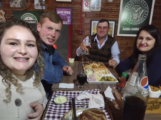 Read moreUm lugar incrível numa cidade pequena como Dom Feliciano. Atendimento muito bom, cardápio extenso e bem variado em comida e bebida. Sempre tem chopp gelado, mais de um tipo. É pub com música ambiente à noite nos dias de semana, restaurante durante o dia e casa de festa nos fins de semana. Realmente o ambiente é mais apropriado para pub, inclusive com lareira no inverno para esquentar, mas sempre os clientes são...