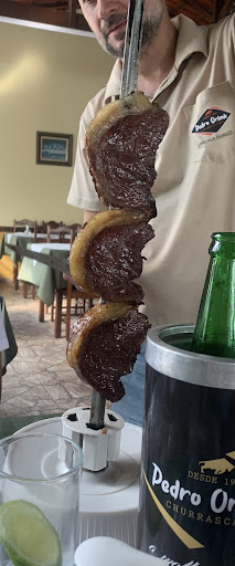 Read moreEstávamos passando na região em viagem e ja conhecíamos a churrascaria... tínhamos boas lembranças, contudo desta vez não nos causou nenhum impacto, além da carne que era o ponto forte, não estar saborosa... lamentamos... mas vale experimentar. O preço é razoável. O churrasco vem no espeto e a parte você pode comprar pedaços de linguiça, queijo de no, coração. Acompanhamentos: ovo de codorna, salada, maionese, feijão tropeiro,...
