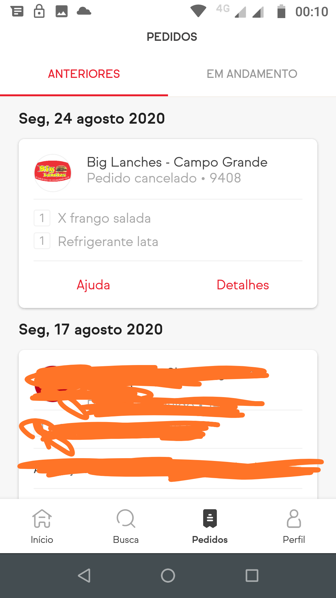 Read morePrimeira e última vez que compro nesse lugar, péssimo atendimento !! Isso aconteceu no dia 24/08 porém estou postando só agora, por falta de tempo.. Enfim fiz o pedido desses itens abaixo: 1 X- frango e 1 fanta, até aí blz, o entregador veio normal e fez a entrega, porém como a frente da casa estava um pouco escura ( já era mais ou menos 22hr) e na pressa para pegar os produtos, não percebi que me entregaram um X-tudo no lugar, além de vir o lanche errado, ainda não enviaram a fanta lata, somente dei conta quando entrei e vi a etiqueta com o nome de outro cliente, então mandei msg para eles, e me informaram que o entregador tinha trocado os pedidos (falha séria) pois outra pessoa teria pedido um lanche próximo de onde eu estava.. conversei com eles, e ficaram de me mandar outro lanche (dessa vez o correto) e a fanta que não venho, porém depois de uns 20 min mais ou menos, cancelaram meu pedido, liguei lá novamente e dessa vez vieram com outra conversa que eu teria que devolver o lanche que veio errado, porém ele já estava aberto e eu tinha cortado um pedaço dele). Quando foi informado isso eles simplesmente falaram que não teria como mandar outro etc etc.. enfim fiquei sem o lanche, o refrigerante que não vi nem rastro, e perdi meu dinheiro em uma coisa que não consumi.. uma falta de consideração com o cliente !! Big Lanches, próxima vez vou passar longe de vocês, Não indico...