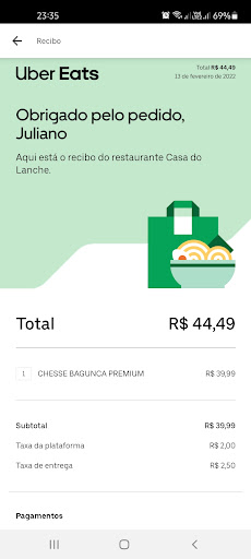 Pedi pelo Ifood sem ver as avaliações antes, que arrependimento. A entrega é extremamente demorada, cancelei o pedido e o Ifood estornou meu dinheiro, então não posso avaliar o sabor da comida. Mas, mesmo que fosse a melhor coisa que eu comeria, não compensaria o tempo de espera. Falta transparência com o cliente, zero respeito. Achei que fosse comer um lanche, acabei no pão com manteiga 🤡 eu amamento, já não aguentava mais esperar. Sinto pena dos entregadores que têm que correr nesse trânsito feito loucos pra dar conta de fazer as entregas enquanto o miserável do patrão não quer pôr a mão no bolso pra contratar mais funcionários. O entregador ainda chegou com meu pedido, estava com uma pilha de comandas na mão, me senti muito mal por ele ter vindo aqui sem necessidade. O trabalhador brasileiro sofre nas mãos desses...