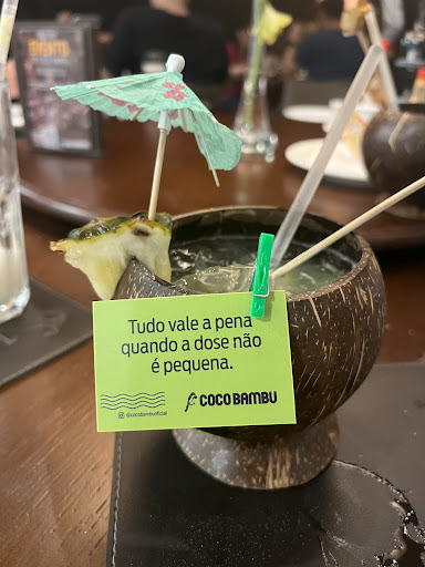 Read moreTivemos uma péssima experiência Iniciou com a caipirinha de côco que foi servida em um copo de vidro porque segundo o garçom estava em falta o côco. Depois pedimos um vinho frisante. Quando nos trouxeram o vinho veio outro rotulo alegando que o vinho que pedimos não tinha mais, porém este outro era similar . O vinho que era para ser frisante não tinha bolhas, questionamos a garçonete que veio com uma conversa que o vinho era muito levemente frisante diferente e quase não se apareciam as bolhas. Ao degustar o vinho parecia um vinho frisante velho que tinha sido guardado na geladeira e servido 2 dias depois. Eu e meu esposo costumamos tomar vinhos e conhecemos um pouco sobre vinhos a ponto de saber que o vinho não estava normal. Chamamos o garçom e relatamos que não dava para tomar o vinho. Então o sumelier veio até nossa mesa, ele experimentou o vinho e observou que o vinho realmente não estava normal. Então ele nos relatou que esta safra estava com problemas e outros clientes já haviam reclamado sobre este mesmo problema. O interessante foi que nos ofereceu em abrir outra garrafa, então eu falei que se a safra não estava boa não adiantaria abrir outra garrafa. Eu e meu esposo então optamos por outra bebida . Ele pediu um chope e eu uma água mineral com gás. A água demorava a chegar então solicitei novamente a garçonete, que falou que já estava vindo a água. Resumindo, terminamos a janta, pedimos a conta e água não veio, mas na conta ainda constava a água . Meu esposo ao pagar a conta teve que recalcular o valor pq o valor estava incorreto e estavam cobrando a taxa de gorjeta sobre um valor maior. Depois da conta paga, quando estávamos saindo da mesa veio o garçom com a água. Nossa experiência foi péssima . Fiquei triste pq eu e meu esposo estávamos em viagem, e eu já frequento os restaurantes CocoBambu de São Paulo e Curitiba e sempre tive experiências excelentes, era a primeira vez meu esposo me acompanhou em um jantar no Coco Bambu, eu havia feito a maior propaganda do restaurante. Não sei se ele volta em um restaurante da rede porque a sua primeira experiência...