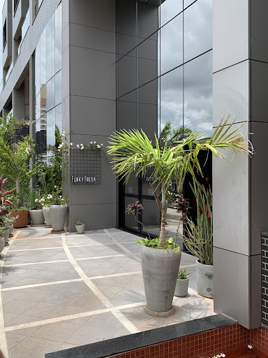 Não me importa quem deveria me dar suporte, o nome do prédio eu nem me lembro, o que nós lembramos é que fomos ao Funku Fresh e na entrada tem uma piscina decorativa sem iluminação.