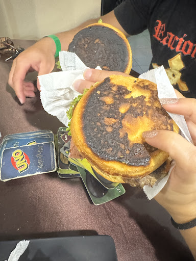 Todas as pouquíssimas tentativas de hambúrgueres que nos serviram estavam queimadas a um ponto que acredito que nem o "fogomaldito" seria capaz de carbonizar daquela forma. No dia, só havia 2 funcionários trabalhando (o que foi um desrespeito com eles, já que o lugar estava lotado e obviamente 2 pessoas não dariam conta). Reservei mesa para 15 pessoas e, quando chegamos, não havia lugar para meus convidados sentarem. Dois deles ficaram de pé por cerca de 40 minutos até desistirem e irem embora, tanto pelo descaso/humilhação de ficar tanto tempo de pé quanto pelo fato de que, nesse tempo todo, NENHUM hambúrguer chegou à mesa. A situação continuou assim até a metade restante dos convidados desistirem de esperar suas comidas e também ir embora para jantar em outro lugar.