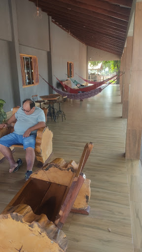 Ambiente bien preparado, aire acondicionado y buena iluminación. Sirven ensaladas y diversos platos calientes, cobrando por peso. Precio muy razonable, económico. Calidad de los alimentos es buena. Tiene una pequeña hoguera o fogata para mantener los alimentos calientes. Muchas opciones fritas, mucho aceite, no muy saludable, pero sabroso. Sirven platos de pescado (Pirão, bobó, milanesa de tilápia), cerdo y algunas pastas (canelones, fideos). No hay "rodizio", todo se pesa. Creo que faltaba carnes de vaca, casi no había opciones de asado o churrasco. Ambiente familiar, mesas, sillas y cubiertos bien presentados. Estacionamiento libre y cubierto. En el área exterior puedes usar unas redes para descansar, hay varias disponibles. También tienen una pequeña tienda de souvenirs y...