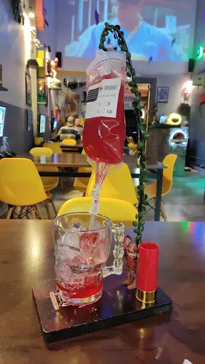 Read moreO ambiente é top, bem aconchegante, decorado com vários objetos geek. A comida extremamente deliciosa, pão macio, o de frango: perfeito! E o de carne dupla maravilhoso tbm. Extremamente saboroso. É bem temático então os pratos tem nomes de lanche e as bebidas tbm. A da imagem é "The Walking Dead" e é muito saboroso e divertido. Uma experiência completa! O atendimento...