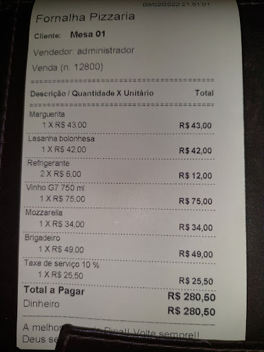 edit: 1- vcs sao muito bons de resposta, mas essa lorota de massa fina é pra enganar turista. A massa nao tem nada a ver com a quantidade de recheio, e vcs sabem bem disso. 2- nao, ela nao foi simpatica, foi EXATAMENTE igual vc esta sendo, prepotente e subestimando uma opiniao sincera de um consumidor, que mesmo se sentindo lesado, ainda TENTOU pedir uma outra pizza, e solicitando a gentileza de rechearem direito ( pelo menos para forrar a massa da pizza com o recheio.....). Na verdade ao inves de entender, quis dar lição de casa sobre pizza. 3- Quanto ao valor, pode ter sido diferente, nao me lembro, pois sai dai e fui jantar em outro lugar.... ja que vc tem esse registro fiscal, registrou tbm que fiquei tao indignado com a conduta da pizzaria que mesmo eu querendo PEDIR outra pizza, desisti e fui embora ? 4- Alias, anota ai tbm nos registros que pizzaria tem que ter azeite.... 5- Boa sorte e boas vendas ! (pra turista...