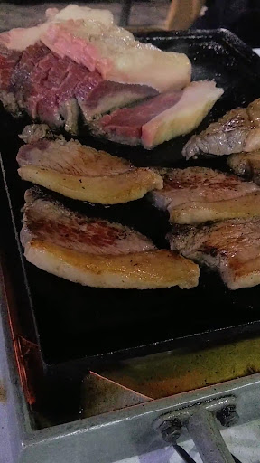Sugestão de melhorias: Trazer a picanha já assada e a chapa somente para mantê-la aquecida assim diminui as gotículas de...