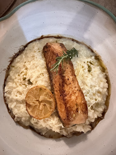 Read moreO atendimento é excelente, a entrada demora mais que o normal para sair. Pedi um um salmão com Risoto parmesão e enfatizei que gostaria que o risoto estivesse ao dente, mas o resultado foi esse da foto, não tinha cremosidade e chegou mais cozido que “arroz branco”, parecia até papa de aveia, não tinha sabor e nem cremosidade.
