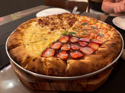 Read moreÓtima pizzaria pra se reunir com família, amigos ou um encontro. Ambiente bonito, agradável. Atendimento excelente pela própria proprietária. Agora o principal: Pizzas deliciosas de tamanhos que variam do pequeno ao Extra grande, grande mesmo! Bem caprichosamente recheadas, parece que foram colocados um a um. Normalmente não como as bordas das pizzas, mas aquela massa estava demais, leve, crocante por fora macia dentro. Não há rodízio, somente a La Cart. E enquanto espera a pizza chegar, é servido um aperitivo de tiras de massa de pizza com uma deliciosa geleia de abacaxi com pimenta. Vale a...