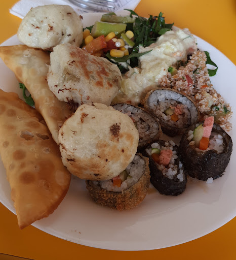 Read moreÉ um dos meus restaurantes favoritos. Oferece boas opções de saladas, além de sushi e algumas comidas orientais vegetarianas. Dentre as opções, o buffet oferta arroz integral, Yakisoba, e carne de panela de soja. É possível optar pelo Livre (em que você pode repetir mais de uma vez), o qual é no valor de R$26,00 por pessoa, ou no quilo, que se não me engano está por volta de R$48,00. De cortesia tem chá...