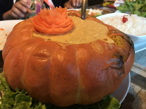 O local é bem aconchegante e tem um bom atendimento. Quem olha o cardápio não bota muita fé no restaurante, pois tem uma parte grande dele ocupado por panquecas. Vimos muitas pessoas olhando o cardápio e indo embora. Mas no cardápio tem risotos, massas, lanches e o que eles dizem ser a especialidade da casa que são 2 pratos na moranga (um lembro que é camarão, o outro não lembro) pra 2 pessoas e o valor R$ 150,00. Eu pedi um risoto de camarão que estava muito bom, arroz no ponto, muito camarão, percebe-se que não é usado caldo pronto, mas o sabor é tão suave que realmente parecia caldo natural. Minha esposa pediu uma panqueca de carne com molho de queijo que são bem grandes, é uma refeição. Estava muito boa também, o ponto da carne e a textura. Também pedimos uma doce depois de sobremesa, com morango e chocolate. O preço de tudo achei justo, R$ 120,00 com a bebida (2 sucos de uva). Só não dei excelente pois realmente achei o cardápio com pouca diversidade de pratos, não tem carne vermelha...