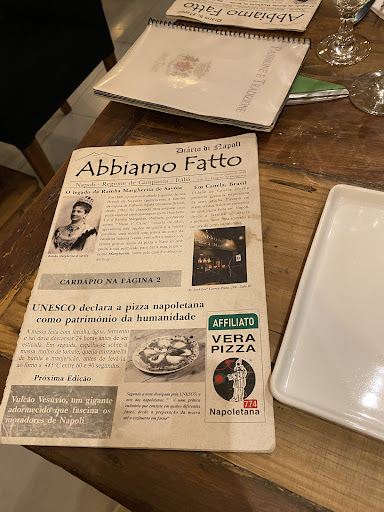Read moreO ambiente da pizzaria é reconfortante e conta com uma decoração muito bonita. O som ambiente é agradável e em uma altura que não gera incômodo. Ao chegarmos, sentamos em uma mesa e o garçom disponibilizou o cardápio e saiu. Depois de deixar o cardápio, ficamos aguardando ele aparecer novamente para perguntarmos sobre todas as pizzas, pois o cardápio é todo em Italiano (tanto o nome do prato quanto os ingredientes), e por eu e meu esposo não termos familiaridade com a língua e apesar de algumas palavras serem parecidas com o português, tivemos algumas dúvidas quanto aos ingredientes. Assim que uma atendente apareceu no nosso raio de visão, a chamamos para perguntar sobre os ingredientes. Ela não sabia nos informar sobre alguns, mas prontamente nos disse que perguntaria e nos informaria, então quanto a isso não tivemos problemas, porém o atendimento do outro senhor para nós não foi agradável. Acreditamos que seria importante que ele nos perguntasse ao menos se queríamos alguma ajuda com o cardápio ou se já conhecíamos a casa, em vez de simplesmente nos entregar o cardápio e sair. Entenderíamos essa situação com o garçom se o local estivesse cheio, mas só havíamos nós e mais duas mesas. A primeira e última página do cardápio se assemelham a um jornal, tendo imagens e algumas curiosidades, o que o torna diferente do convencional. Em relação ao sabor das pizzas, são excelentes. Ao provar vê-se que os ingredientes são de ótima qualidade e que são muito bem preparadas. Chegaram bem quentes na mesa. Em relação ao tempo de preparo, foram entregues rápido. Nos entregaram dois azeites, de excelente qualidade também, o que tornou melhor ainda o...