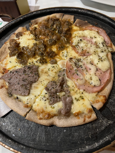 Acho que nunca comi tanto e tão bem quando se refere a pizza. Ambiente pequeno e muito aconchegante. Optando-se pelo rodízio, as pizzas não são servidas freneticamente como em outros estabelecimentos. Os sabores, que são bem variados e criativos tanto em salgadas quanto em doces, bem como na carta de bebidas, são servidos com calma, possibilitando uma melhor degustação. Fomos muito bem recebidos e excelentemente atendidos, recebendo grande atenção de todos os funcionários com os quais tivemos contato. Nos sentimos divinamente confortáveis, como se fôssemos clientes antigos e estivéssemos em casa. Voltaremos sempre que possível. Recomendo a todos que procuram uma pizzaria que realmente apresente seus diferenciais. Meus parabéns, nossas gratificações e um grande abraço à toda a equipe da...
