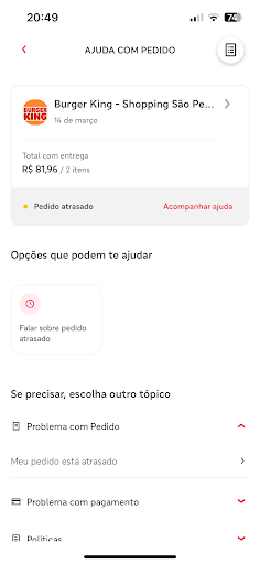 Read moreFiz um pedido no ifood e o entregador veio até mim dizendo que o restaurante não fez meu pedido por falta de ingredientes e que colocaria no aplicativo como se não tivesse encontrado meu endereço, isso depois de uma hora esperando meu pedido. O restaurante não entrou em contato comigo em momento algum avisando sobre a falta dos ingredientes. Quero meu dinheiro de volta imediatamente, tenho os registros de conversa e as câmeras do apartamento pegaram tudo que aconteceu. Se eu não receber meu dinheiro de volta vou entrar com...