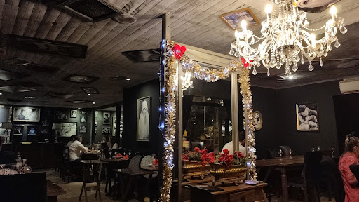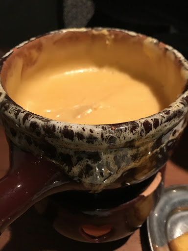 Ambiente: Todo fechado, com cheiro característico de locais que servem Foundue. Primeiro escolhemos uma mesa próxima ao banheiro, depois mudamos porque dava para sentir o cheiro vindo do banheiro. As paredes e tetos são pretos, com fotos de artistas antigos.