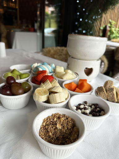 Read moreA experiência está sendo maravilhosa, tanto que não pude sequer esperar acabar a sequência de fondue antes de vir parabenizar tudo. Eu e meus pais pegamos o fondue premium, e está valendo cada centavo e mais um pouco. O ambiente é super aconchegante, o atendimento é maravilhoso, e a comida estava perfeita do começo ao fim. As opções de comidas para mergulhar tanto no queijo como nos chocolates são muito variadas e fartas, com reposição à vontade tanto das opções para mergulhar quanto dos queijos e dos chocolates, e é certo dizer que sairemos daqui satisfeitíssimos! As recomendações pessoais são a polenta e o cordeiro com o queijo, e o wafer no chocolate branco. O mamão em ambos os chocolates com a farofa de coco foi um favorito da mesa também, super recomendado! No todo, apenas experiências ótimas, do...