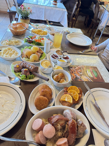 Como se não bastassem as cerca de 20 especialidades que o pessoal coloca à mesa, ainda circulam pelo restaurante mais dois pratos, o Rotkohl, uma receita agridoce com repolho roxo e a Apfelpfannkuchen, panqueca de maçã.