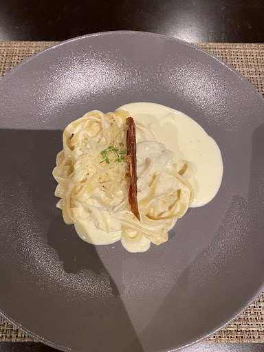 Ao chegarmos o garçom disse que o menu era digital, respondi que estava sem o celular e ele disse que era apenas com o celular. Disse que então não comeriamos, ai disse que iria dar um jeito. Desnecessario para não dizer o minimo. Mas enfim, trouxe um tablet para eu ver o menu. O correto seria ter impresso ou trazer o tablet assim que identificasse que o cliente estava sem celular. No primeiro dia pedimos entrada: a bruschetta estava ruim, pão amanhecido, estava muchão. A massa carbonara estava razoavel, poderia estar melhor. O macarrão kids estava sem gosto, as crianças comeram pela fome. O prato com tiras de mignon o molho não estava bom, erraram no molho. O ambiente é bem bonito, o serviço achei médio baixo pois copos americanos feios para servir as bebidas, não ha guardanapos de tecido( para o ambiente e um um hotel 5 estrelas é algo bem abaixo do esperado). Ao pedir um vinho o garçom não sabia informar nada sobre o vinho que seria servido na taça( com minha esposa gravida não ha como pedir uma garrafa). Sobremesa estava mediana também. Fiquei decepcionado pra dizer a verdade. No dia seguinte pedimos pizza, estava boa, massa de...