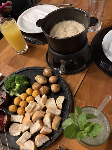 PÉSSIMO, NÃO VALE A PENA, NÃO JOGUEM DINHEIRO FORA! CARO!!!!! Estive no restaurante no dia 22/03/25 à noite. Estávamos procurando uma sequência de fondue para comemorar o aniversário da minha filha. Ao passar pelo restaurante, nos apresentaram o cardápio e ofereceram o fondue com preço "especial" com desconto do preço normal por ser baixa temporada. Foi uma decepção!!!! Uma péssima experiência! Já comi fondues em Gramado mais baratos e com qualidade absurdamente superior. Tirando o atendimento do Sérgio, que foi muito bom, o resto deixou muito, mas muito a desejar, mesmo, sublinhado e negritado. O fondue de queijo estava ok, mas no de carne só nos trouxeram 3 opções e uns molhos bem ruins... esperamos 40 minutos para trazerem o de carne depois que terminamos o de queijo, e veio um prato com carne, frango e suíno. Pedimos reposição de um molho de alho - que era o único gostoso - e nunca veio. Para recebermos o fondue de chocolate foram mais 40 longos minutos e veio apenas uva, morango, waffer, banana, churros e mais alguma coisa que não lembro o que era, ou seja, apenas 6 opções apesar de a propaganda ser de que viria mais frutas. Também pedimos uma reposição de morangos que nunca chegou, desistimos e pedimos a conta. Foi a maior decepção da viagem, um restaurante famoso, bonito e tal, com uma cozinha péssima, que se propõe a servir algo que não é sua especialidade e deixa os clientes frustrados e incomodados esperando horas para serem servidos. Perdem dinheiro também, pois chegamos às 20h e saímos às 22:30h, ou seja, passamos quase 3 horas no local, ocupando mesa, porque o atendimento estava catastrófico. Nunca mais volto. E o pior de tudo, não foi barato!!!! nada barato!!!! qualidade questionável, sem variedade de frutas e carne, demorado!!! Qualquer pessoa que tenha ido em outros restaurantes de fondue em Gramado, sabe que não deixam os clientes esperando quase uma hora pela nova sequência de fondue, é tudo muito rápido. Minha filha ficou super chateada pq adora fondue e era aniversário dela. PÉSSIMO, NÃO VALE A PENA, NÃO JOGUEM DINHEIRO FORA! CARO!!!!! não valia nem a metade do...
