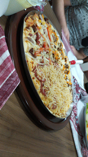 Olá, Ambiente: Encontramos esse lugar por comentários dos outros, porém ao chegar, já desanimamos. Não possui nem uma fachada com o nome do "restaurante" somente na placa no barranco que não dava uma boa sinalização. Além do ambiente ser muito grande comportar muitas pessoas e ter poucos na cozinha para isso, os banheiros possuem apenas uma cabine gerando uma fila enorme. Serviço: Ao chegar nos deparamos sem um cardápio para saber oque poderíamos beber ou oque seria servido. Os garçons são super queridos, porém os coitados devem sofrer no calor pelo ambiente não ser climatizado. Comida: A comida não tenho muito a que me queixar muitoooo boa, se tivessem uma boa organização e comprometimento com os clientes teriam tudo para crescer cada vez mais. Porém foi encontrado um cabelo no meio da pizza, entendemos que erros podem acontecer também, mas estava enrolado no meio da massa. E a massa na maioria das vezes estava crua, pelo fato da casa estar muito cheia. O valor é ótimo mas se não conseguem fazer uma estrutura melhor, aumentem, o serviço e a comida sendo boas vocês podem sim crescer. E detalhe o rodizio conta com pizzas e bifes, mas não foi servido bifé pelo fato da casa estar muito cheia. Nem sempre um valor baixo satisfaz todos os clientes. Viemos entre 8 pessoas e cada um comeu no máximo 10 pedaços de pizza ficamos 2 horas lá. Gente pelo bem do negócio de você chefe, invista mais no seu negócio, hoje em dia o pessoal busca mais qualidade do que valor.