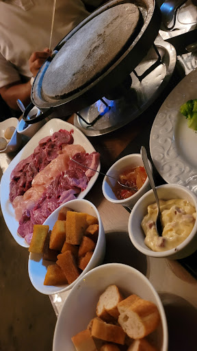 Que ambiente aconchegante, fomos tão bem recebidos que com certeza voltaremos. Restaurante tão lindinho, música ao vivo, comida saborosa, pedimos um rodízio de fondue que na primeira etapa vem queijo com os acompanhamentos: brócolis, pão, polenta frita, batata, goiabada super saboroso, na segunda etapa carne alcatrão, picanha, frango e calabresa na chapa e mais 15 tipos de molhos, na terceira etapa chocolate com acompanhamentos: uva, morango, abacaxi, melão mamão, banana, waffles. Podendo repetir quantas vezes quiser. O atendimento é muito bom, os garçons são modestos e gentis. Gostamos de tudo e a música muito boa. Local perfeito para aquele jantar romântico.